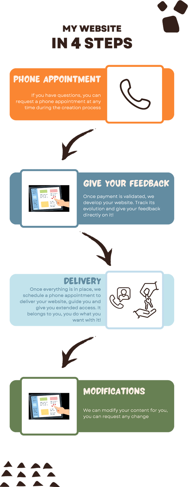 Professional creation by expert developers: responsive WordPress website (mobile and tablet optimized), up to 5 custom pages (home, services, products, contact, legal notices)